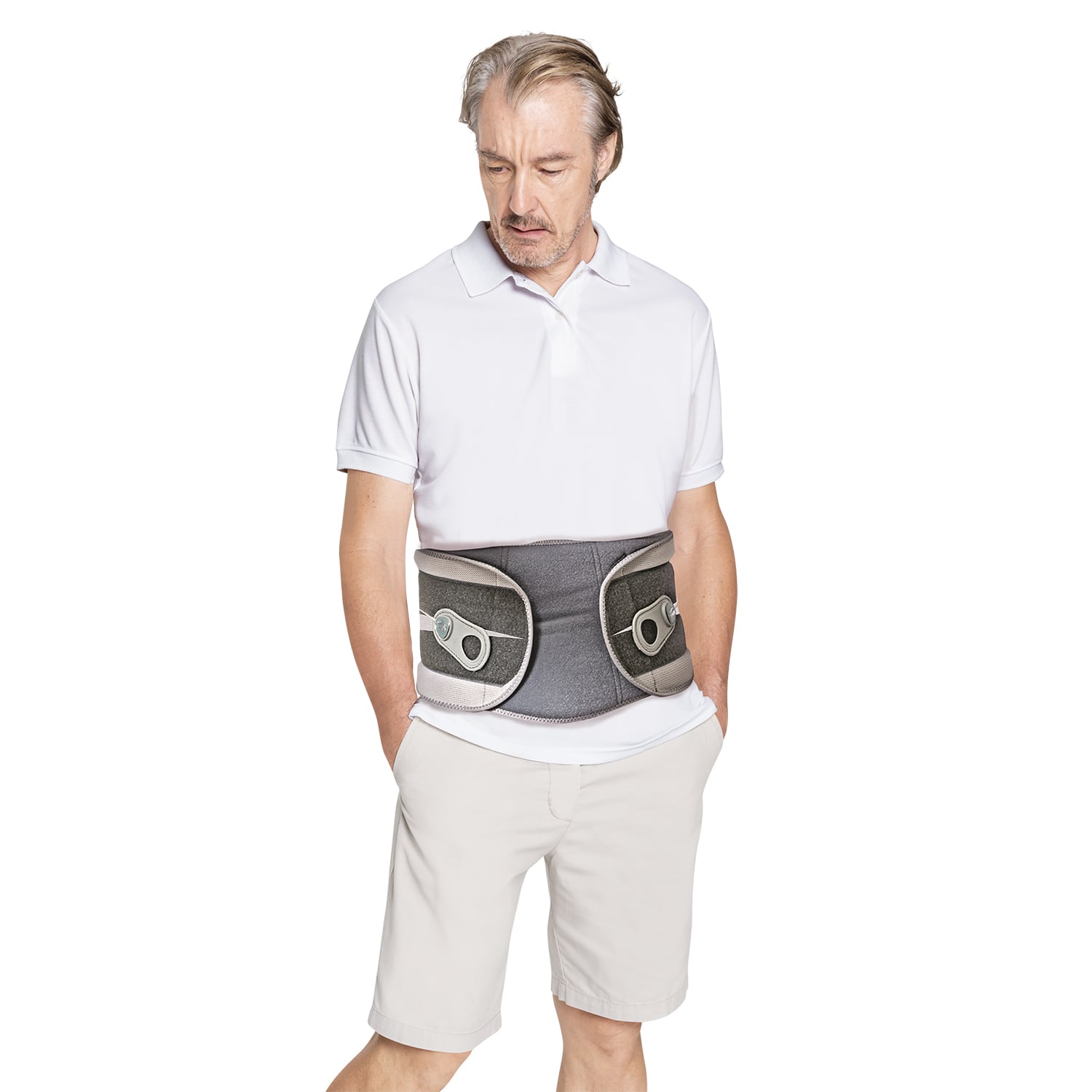 Aparato ortopédico avanzado diseñado con un panel posterior semirígido y un mecanismo de tracción con múltiples poleas para enfatizar los efectos de presión controlada e independiente, para estabilizar y aliviar el dolor de espalda. Se adapta ergonómicamente a la cintura, requiere menos fuerza a los pacientes de edad avanzada para lograr una alta compresión e inmovilización. Recomendado específicamente para estabilización post-operatoria y descompresión multi-nivel.
