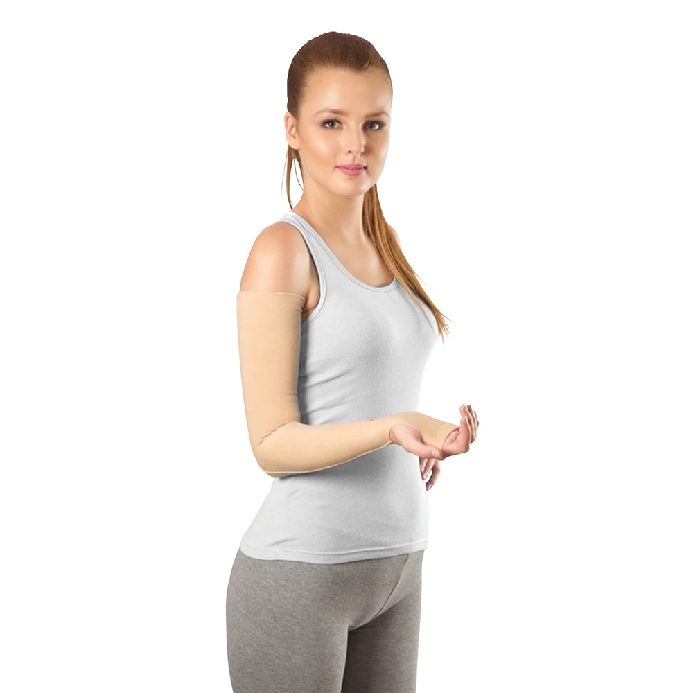 Las mangas de compresión Tynor, son prendas especializadas que aplican presión en el brazo y la mano para mantener el movimiento de la linfa en la dirección correcta. Se utilizan para proporcionar apoyo y compresión graduada en casos de quemaduras, linfedema y otras afecciones vasculares. La forma anatómica de la manga, se adapta al brazo, proporcionando un excelente ajuste.