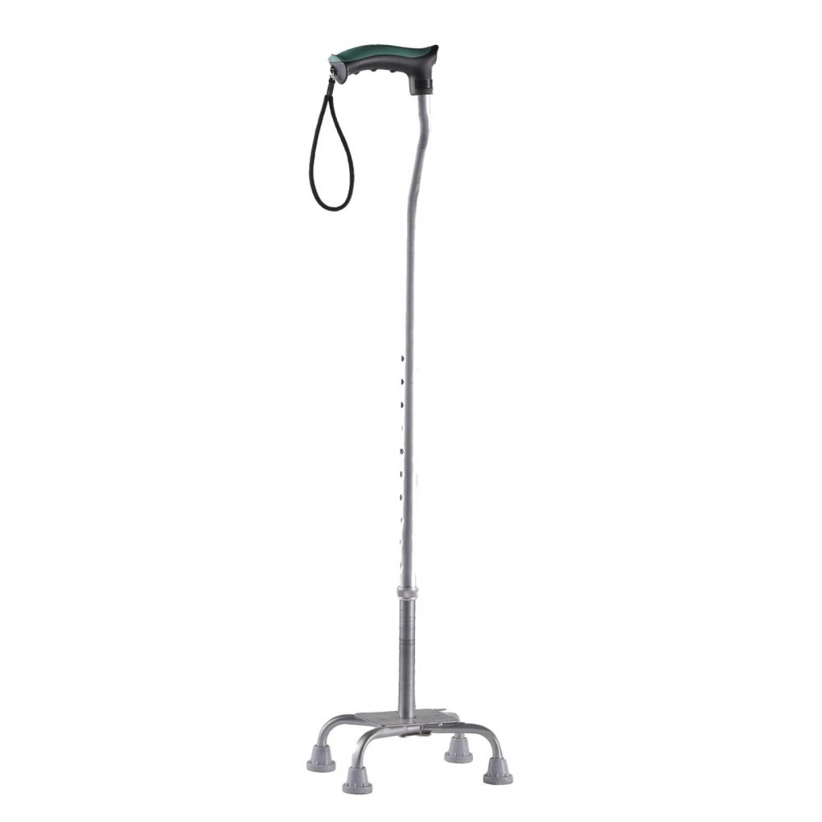 El bastón de cuatro apoyos, proporciona una estabilidad adicional durante la caminata a personas muy debiles, de edad avanzada o con problemas físicos. Fabricado con aluminio de calidad especial para garantizar su resistencia, durabilidad y ligereza. La base ancha proporciona una buena estabilidad. la función de ajuste de altura, garantiza un soporte de carga adecuado, comodidad y una postura correcta.